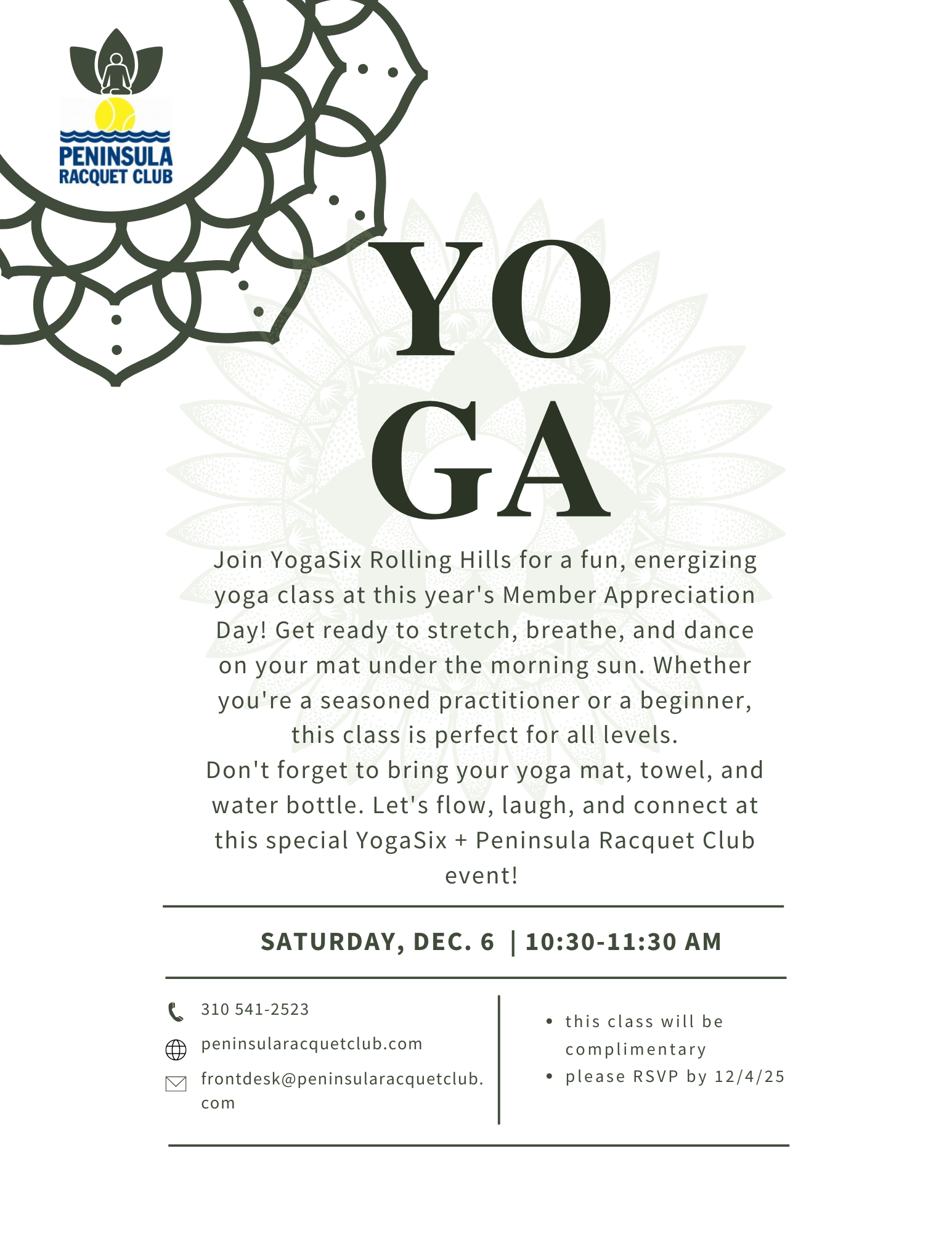 (310)541-2523 FrontDesk@PeninsulaRacquetClub.com